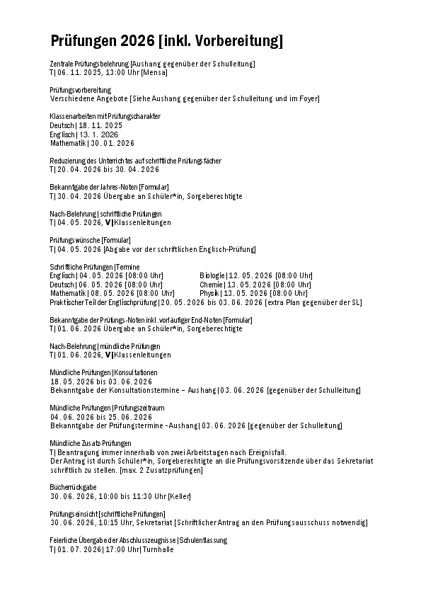 Zusätzlich bieten wir verschiedene Formate für die Prüfungsvorbereitung im "Offenen Anfang" und "Offenem Ende" an.