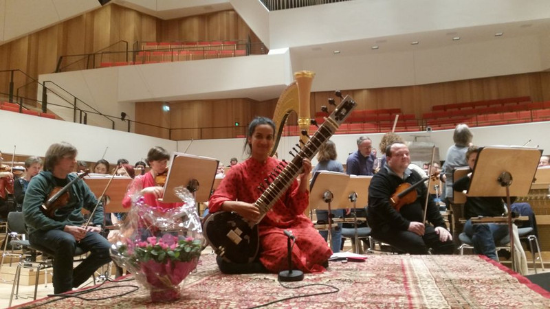Orchesterprobe im neuen Kulturpalast Der Blick von der Empore über die Musiker zu den Sitzplätzen. Die Sitar-Virtuosin Anoushka Shankar.