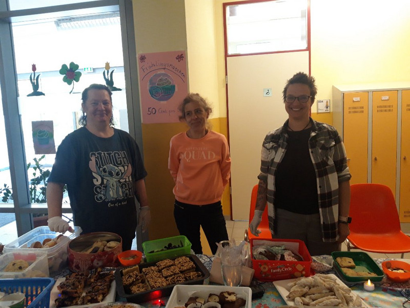 Dank vieler fleißiger Bäcker konnten Mitglieder und Freunde des Fördervereins (Muttis aus der Klasse 2d) zusammen mit Frau Hertel vom Familienschulzentrum unseren Schülern in beiden großen Pausen Süßes sowie Gesundes anbieten.