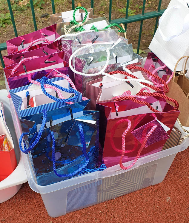 Frau Hertel vom Familienschulzentrum belohnte die Teilnehmer mit einem liebevoll zusammengestellten Geschenkbeutelchen. Mitglieder und Freunde des Fördervereins boten allen Gästen Getränke und Gebäck.