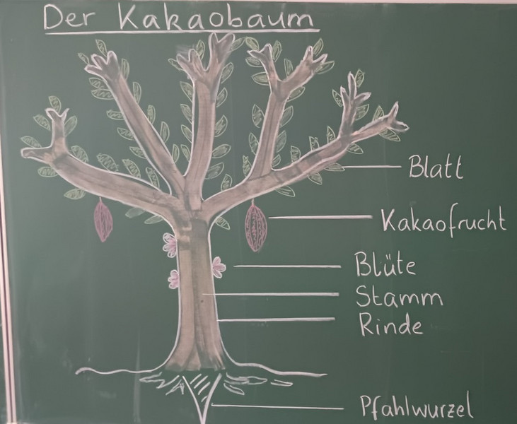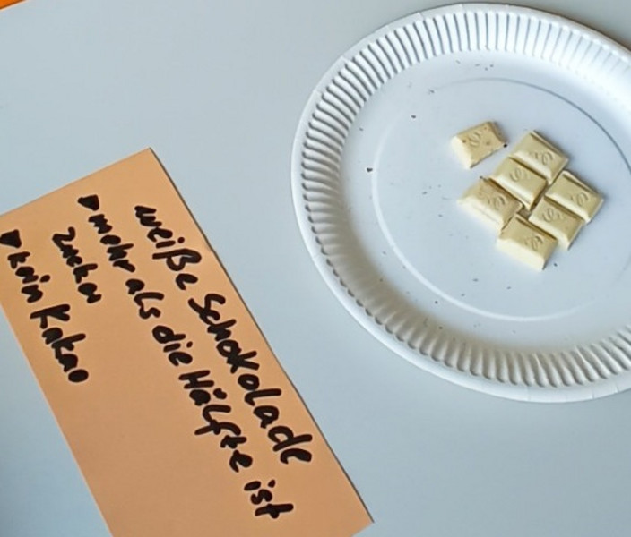 In ihren Gruppen beschäftigten sich die Kinder intensiv mit dem Thema Schokolade. Sie lernten, in welchen Ländern Kakao angebaut wird und unter welchen Bedingungen die Menschen dort arbeiten. Dabei sprachen wir auch über Kinderrechte und darüber, warum fairer Handel wichtig ist. Natürlich durften die Kinder auch verschiedene Fairtrade-Produkte probieren.