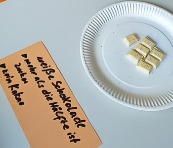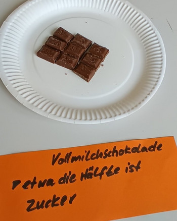Ein weiterer spannender Schwerpunkt war die Frage, wie viel Zucker eigentlich in Schokolade steckt. Die Kinder untersuchten verschiedene Sorten und waren überrascht, wie hoch der Zuckergehalt besonders bei Vollmilchschokolade ist.