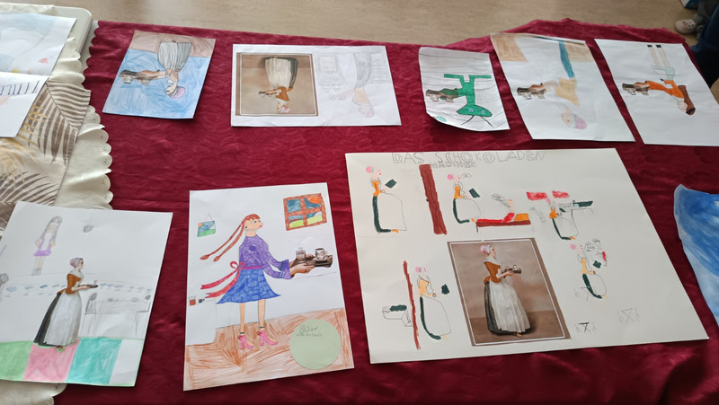Auch die Kunst kam nicht zu kurz. Die Kinder lernten das Bild „Das Schokoladenmädchen“ kennen und setzten ihre eigenen Ideen dazu kreativ um. Dabei entstanden viele schöne und ganz unterschiedliche Werke.