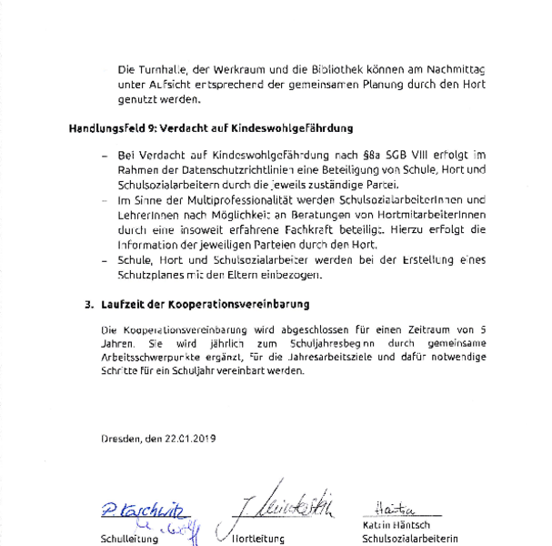 Kooperationsvertrag Schule-Hort-Sozialarbeit