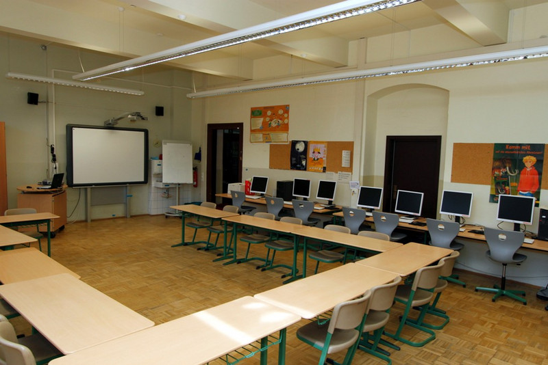 Neben 12 Klassenräumen verfügt unsere Schule über eine Turnhalle, Werkräume, eine Schulbibliothek, eine Lernwerkstatt mit 13 PCs und einen Freizeitraum, der für den Musikunterricht genutzt werden kann.