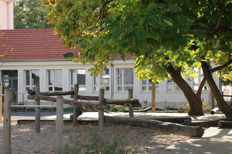 Auch während der Hofpause - und später im Schulhort - haben die Kinder vielfältige Möglichkeiten, zu spielen und sich auszutoben.