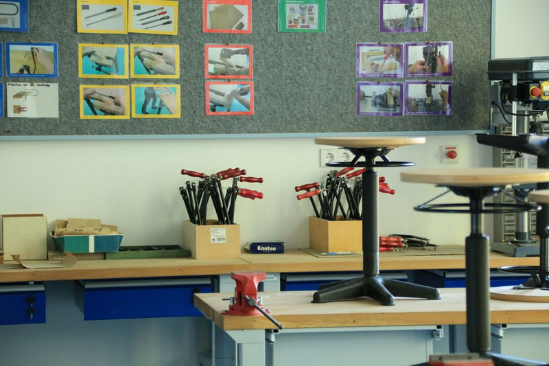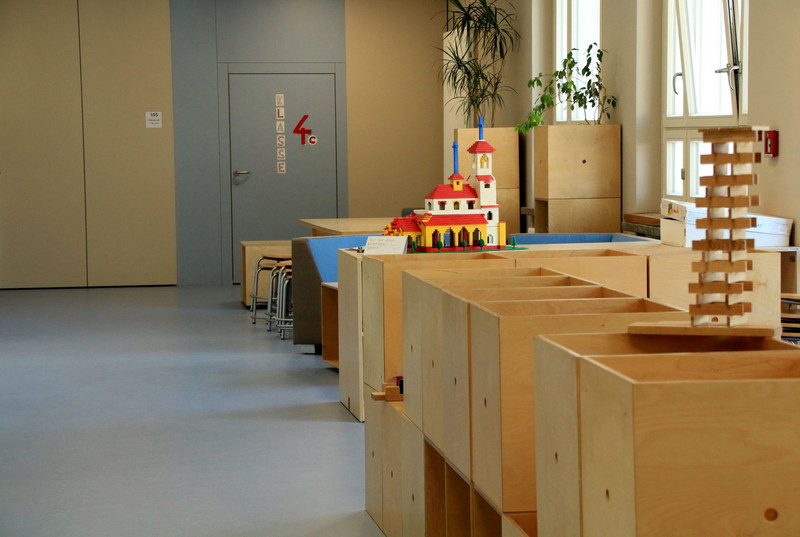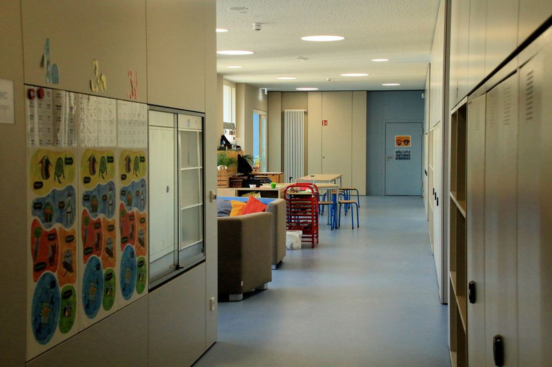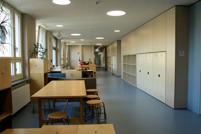 Unser Schulhaus hat nun eine Innenausstattung, die sich sehen lassen kann. Alle Fußböden in den Gängen haben ihre eigene Farbe und für jede Klasse gibt es Ranzenregale und Garderoben. Die Klassenzimmer sind mit teilweisen Einzelarbeitsplätzen, Eigentumsregalen und Fernseher sowie Blu-ray-Player ausgestattet. Computer- und Werkenraum befinden sich im neugebauten Anbau, welcher bereits 2018 fertiggestellt wurde.