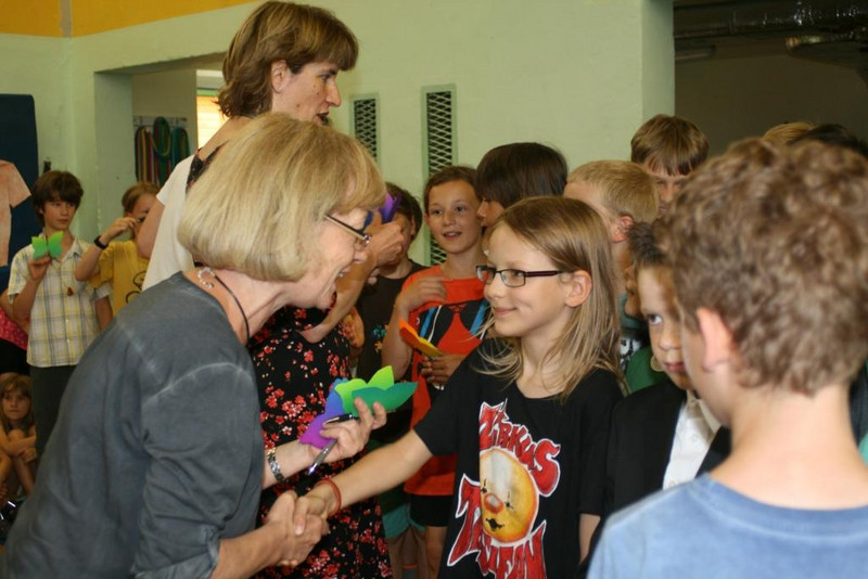 Zuerst konnten wir die Sieger des Känguru-Wettbewerbes auszeichnen. Wir gratulieren Vincent W. und Arne K. Danach löste Herr Gläsel ein Versprechen ein. Vor drei Jahren hatte er sich gewünscht, dass sich mehr Jungs dem Tanzen widmen. Nun erhielten unsere Breakdancer zur Belohnung ein cooles Shirt. Im Anschluss zeigten Schüler der Klassenstufe 3 einen Ausschnitt aus dem Programm zur Kästner-Ralley. Vielen Dank. Als fünf Lehrerinnen spontan eine Tanzeinlage auf das Parkett legten, kochte die Halle. Mit unserer Laola-Welle starteten wir dann gemeinsam in die Ferien.