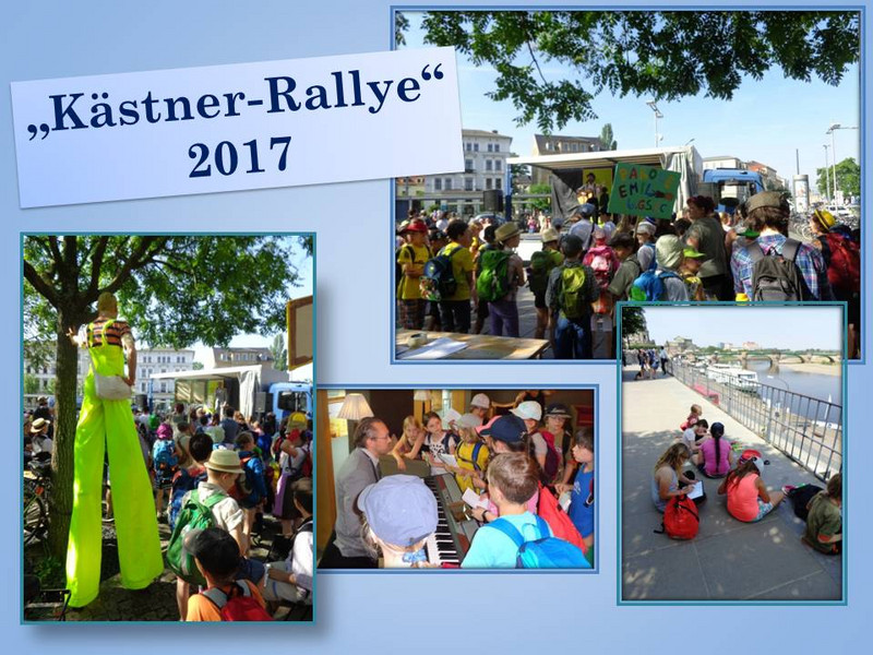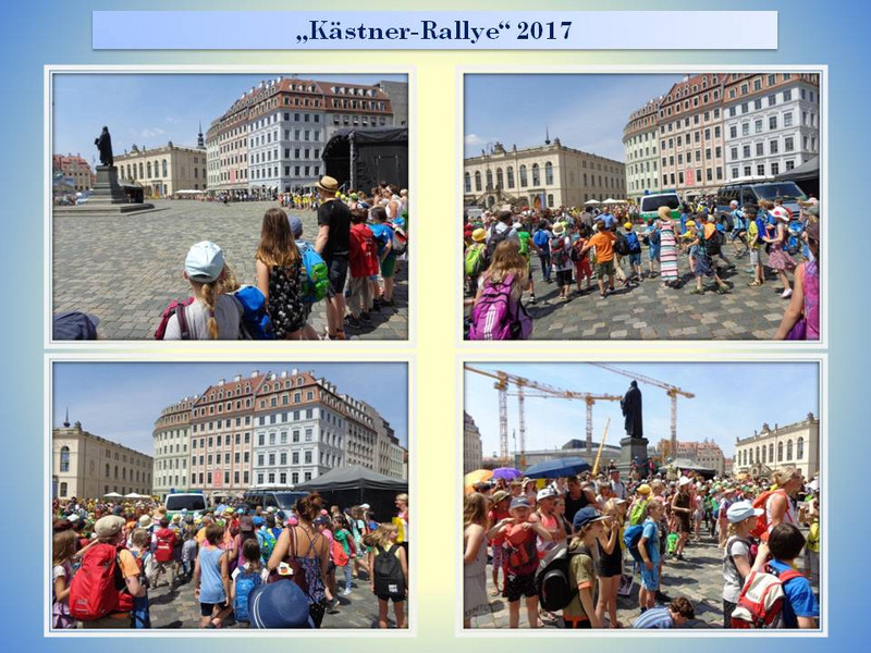 Es ist jedes Jahr eine spannende Diebesjagd durch die Heimatstadt von Erich Kästner. Etwa 400 Drittklässler absolvieren die verschiedensten Stationen zum Werk von Erich Kästner und erfahren auch vieles über ihre Heimat. In diesem Jahr durften wir mit 56 Schülerinnen und Schülern teilnehmen und begegneten in den vier Gruppen unter anderem dem Nichtraucher aus dem fliegenden Klassenzimmer und Herrn Seidelbast aus dem 35. Mai. Außerdem konnten wir einen Blick von der Brühlschen Terrasse und in das Albertinum werfen. Den Höhepunkt bildete wie immer die Verhaftung der beiden Verbrecher auf den Neumarkt.