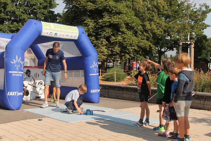 So organisierten wir am 13. Juni 2023, gemeinsam mit vielen Dresdner Sportvereinen, einen tollen Tag für unsere Schülerinnen und Schüler. Ob an der Torwand oder mit dem Eishockeypuck – unsere SuS konnten sich ausprobieren und hatten viel Spaß dabei.