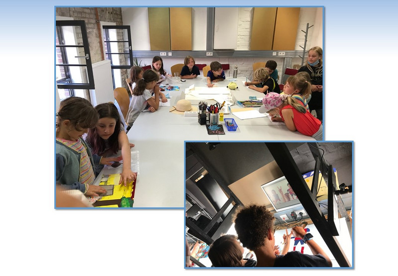 „Unsere“ Animationskünstler haben im Rahmen dieser Veranstaltung einen Kurzfilm erstellt, der als „Mitmalfilm“ ein ganz neues Format bedient. Da die Schülerinnen und Schüler bereits Erfahrung beim Drehen von Trickfilmen hatten, musste keine detaillierte Einführung mehr stattfinden. Die Klasse wurde zunächst in zwei Gruppen geteilt. Während die eine Gruppe die Tonaufnahmen machte, konnten die andere an die Aufnahmen gehen. Die alten Hasen schlüpften sogleich in ihre Rollen und machten sich an die Arbeit. Mit dem Trickfilmmacher Uli Seis und dem Team der Fantasia, entstand als Ergebnis der Mitmalfilm „Hier wohnen wir“. In diesem Film stellen die Kinder ihren Lieblingsort im Hechtviertel vor. Doch das ist noch nicht alles. Der entstandene Film kann nicht nur angeschaut, sondern auch neu „bemalt“ werden. Andere Kinder weltweit können nun mit Hilfe der 16 Malvorlagen neue Hintergründe und Kulissen entwickeln und mit der Mitmal-App in diesen Film einsetzen. So haben alle die Möglichkeit, ihren Lieblingsort lebendig werden zu lassen. Hört sich komplizierter an als es ist. Am besten ihr ladet euch die App herunter und probiert es selber aus!