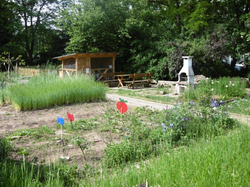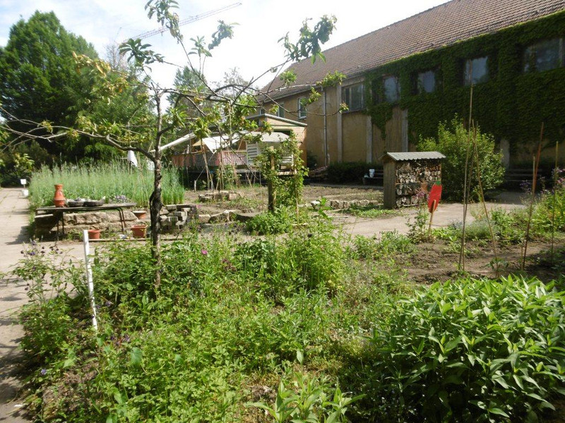 Wir finden ein stimmiges Gesamtkonzept eines offenen Gartens vor, der sowohl von Schule als auch Hort ganztägig genutzt wird. Er ist sowohl Lern- und Erlebnisraum, Nutzgarten, Freiraum für Bewegung, Naturschutz und sinnliche Erfahrung.
