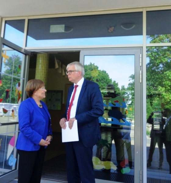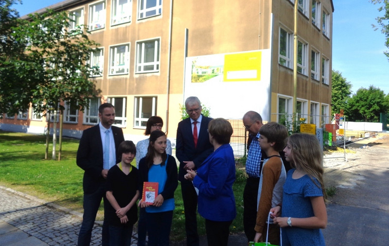 Am Dienstag, 6. Juni 2017, übergab Kultusministerin Frau Brunhild Kurth einen Fördermittelscheck in Höhe von 2,38 Millionen Euro an den Bildungsbürgermeister Herrn Hartmut Vorjohann. Mit diesem Geld wird ein Erweiterungsbau entstehen und das Außengelände umgestaltet.
