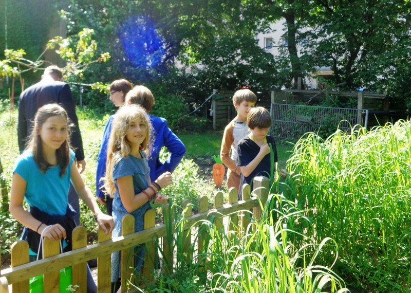 Zwischen der Frau Ministerin und Schülern und Kollegen unserer Schule entwickelte sich ein lockeres Gespräch. Wir zeigten unsere Turnhalle, deren Sanierung zurzeit nicht vorgesehen ist. Frau Kurth sicherte Unterstützung bei der weiteren Vergabe von finanziellen Mitteln zu. Aber auch unser Schulgarten weckte das Interesse der ehemaligen Biologielehrerin. Wir sprachen über die Lehrerversorgung, mehr Eigenverantwortung und das Schulklima.