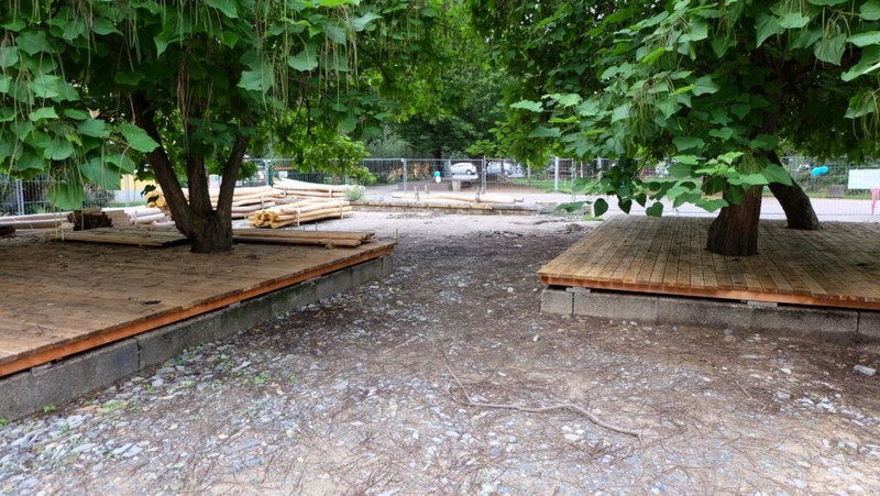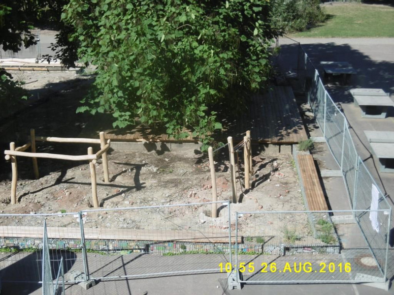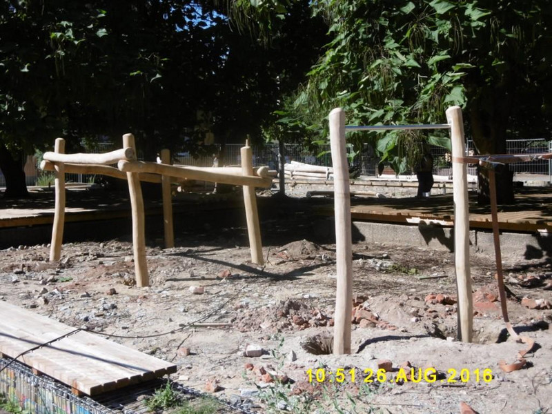 Schaut man mit Beginn des neuen Schuljahres 2016/2017 auf den Hof, hat sich an unserer Kletterinsel "KinderReich" viel getan. Vor den Ferien wurden durch Eltern und Lehrer die Sitzbänke montiert und die Untergrundkonstruktionen für die Holzdecks errichtet. Diese sind während der Ferien durch zwei zusätzliche Helfer so gut wie fertiggestellt worden. Toll, was entstanden ist! Herzlichen Dank an alle!