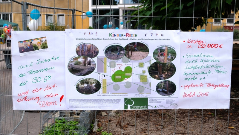 Die Anfrage unseres Fördervereins zur vorgezogenen Gestaltung des Außengeländes wurde in Abstimmung mit dem Hochbauamt der Landeshauptstadt Dresden durch das Schulverwaltungsamt geprüft. Mit großer Freude haben wir die Genehmigung, dass der Teilbereich "Kletter- und Balancierparcours" als vorgezogene Maßnahme genehmigt wurde, zur Kenntnis genommen.