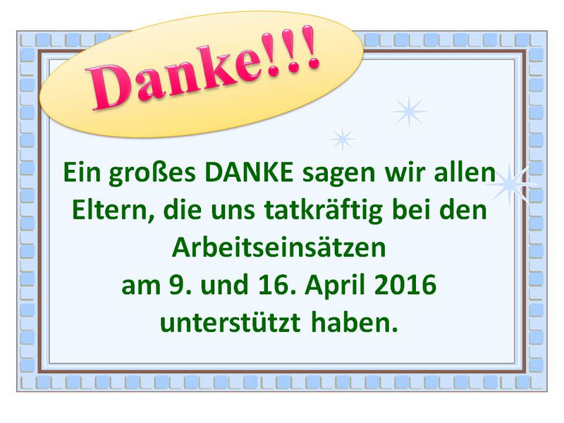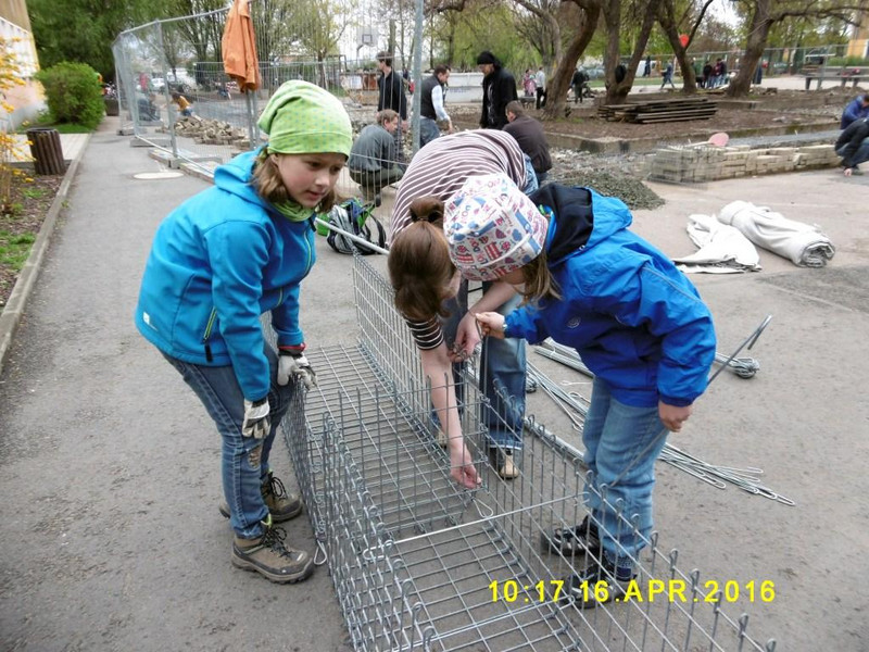Zum nächsten Arbeitseinsatz, am 16. April 2016, gilt es nun die restlichen Gabionen zu stellen und zu befüllen sowie einige Gabionen vom letzten WE nochmal nachzubessern. Hier bitten wir nochmal alle Eltern um tatkräftige Unterstützung.