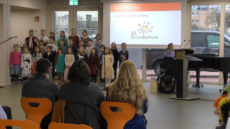 Nur eines ist nicht so, wie der Chor zu Beginn der Feierstunde versprach – es fließt keine Brause aus den Wasserhähnen und die Wände sind auch nicht aus Kuchen und Kakao. Aber eines ist wie im Lied beschrieben – die Schule ist nach unserem Geschmack und eine der schönsten in der Stadt.