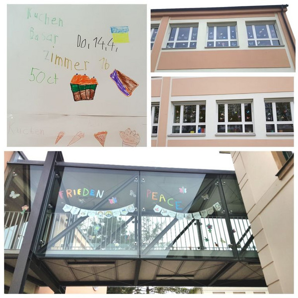 Frieden in der Ukraine! Dieses Zeichen möchten die Schüler und Schülerinnen unserer Schule gegen den Krieg in der Ukraine setzen. An vielen Fenstern im Schulhaus sind gestaltete und mit Wünschen versehene Friedenstauben zu sehen.