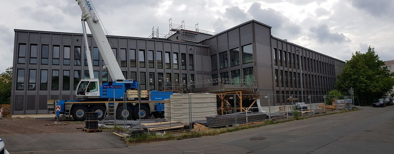 An unserem neuen Schulstandort am Schilfweg wird fleißig gewerkelt - das Schulgebäude steht nun komplett.