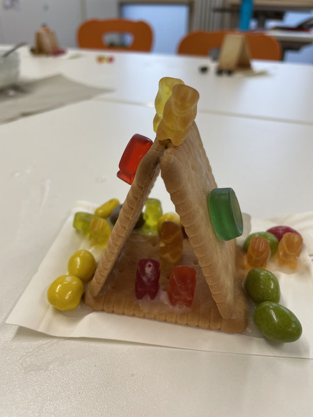 Am letzten Schultag vor den Weihnachtsferien stimmen sich die Kinder unserer Schule auf die anstehende Weihnachtszeit ein. In diesem Jahr entstanden dabei unter anderem weihnachtliche Kekshäuser in der Klasse 1d.