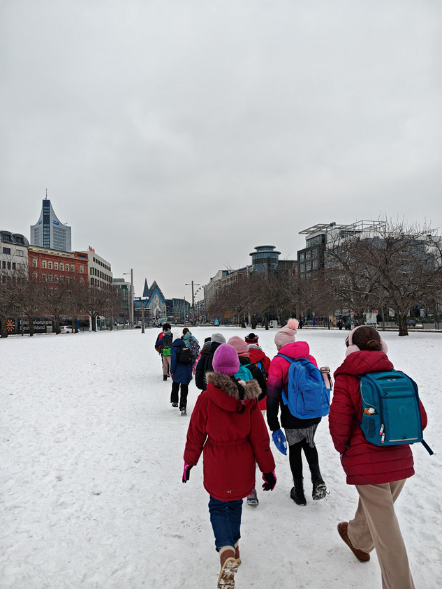 Am bundesweiten Vorlesetag am 21.11.2025 durften wir, die Klasse 3a, neue Orte der Begegnung mit Büchern entdecken – und zwar in der Deutschen Nationalbibliothek. Schon in der Schule starteten wir mit einer bunten Auswahl an zweisprachigen Büchern, Comics und lustigen Bilderbüchern, die sofort Neugier weckten.