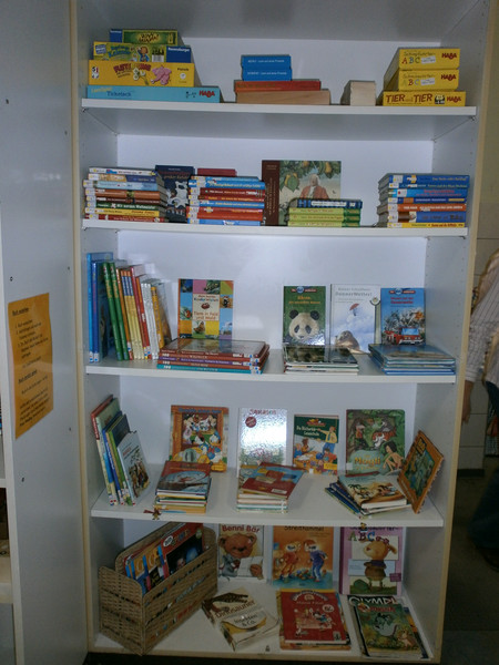 Dort entstand eine offene Bibliothek des Vertrauens, das heißt alle Kinder können sich selbständig Bücher ausleihen und wieder zurückbringen.