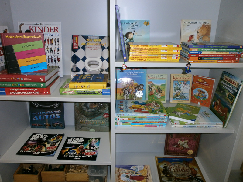 Mittlerweile sind über 400 Bücher im Bestand. Die Themen richten sich nach den Interessen der Kinder und ihren Lebenswelten.