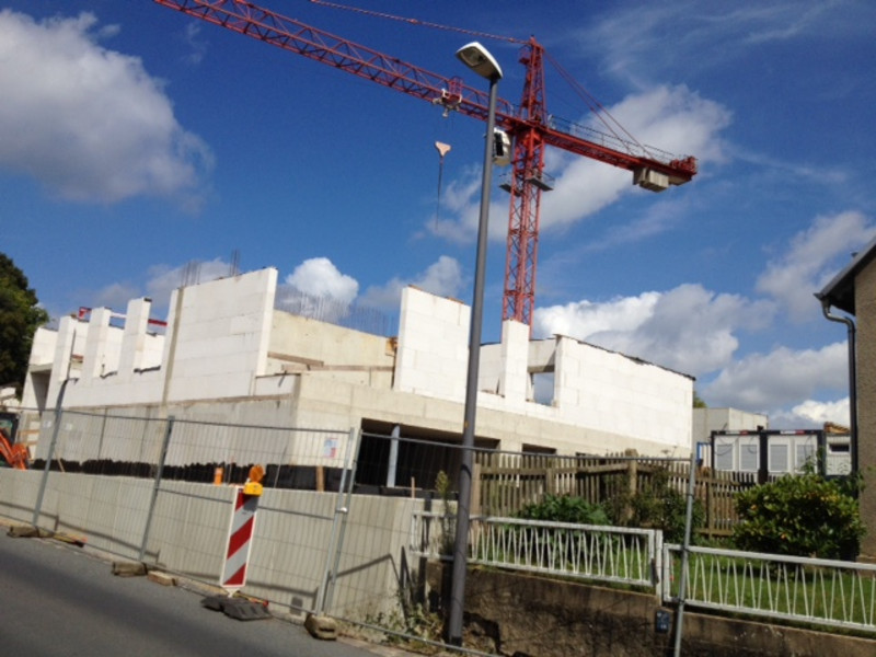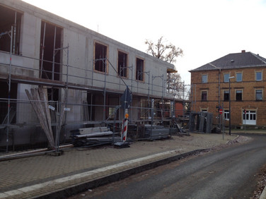 Am 14.03. fand um 14.00 Uhr eine Schulbesichtigung der Baustelle in Rochwitz statt. Der Schulbau ist nun im Rohbau fertig und der Innenausbau beginnt bereits. Teilweise sind die Fenster schon drin und in der Turnhalle stehen die ersten Trockenbauwände. Unsere neue Turnhalle bietet viel Platz zum Sport treiben, mehr als wir je zuvor hatten. Die Dachziegel stehen bereit und werden wohl bald auf dem Dach liegen. Aus den Fenstern in der ersten Etage hat man einen fantastischen Blick, auf die umliegenden Höhen und kann sogar den Triebenberg sehen.