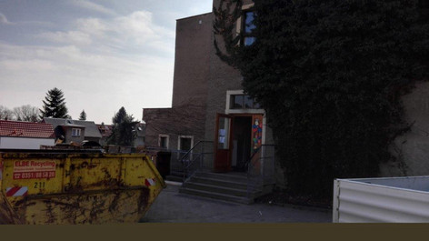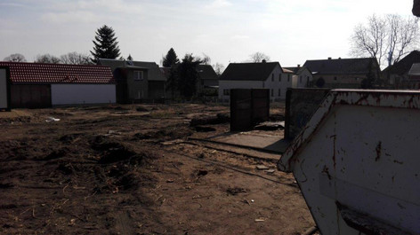 Gleich nach unserem Auszug begannen die Arbeiten zur Bauvorbereitung. Die Bäume wurden gefällt und die Baucontainer errichtet. Seit Montag, 21.03. sind die Abrissarbeiten im Gange. In loser Folge werden wir hier Bilder der Baustelle veröffentlichen.