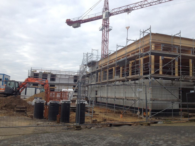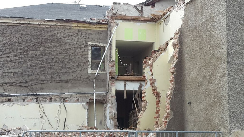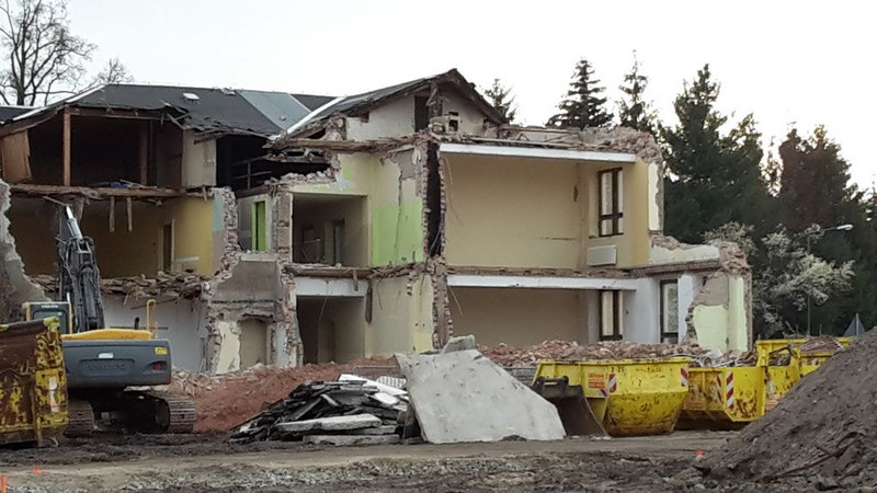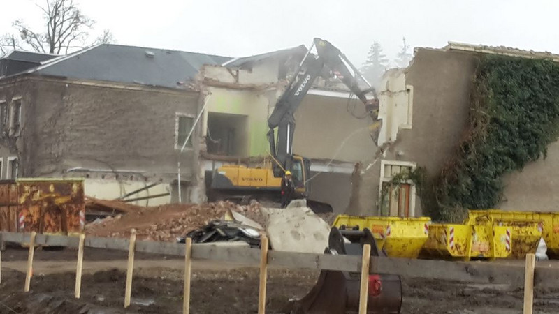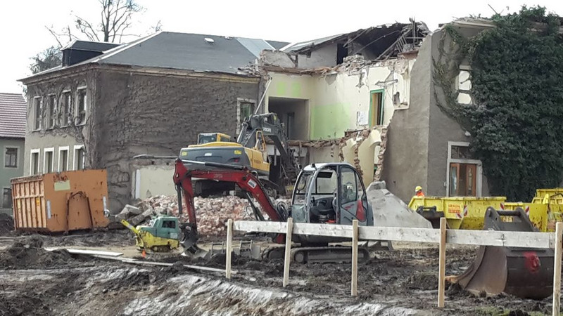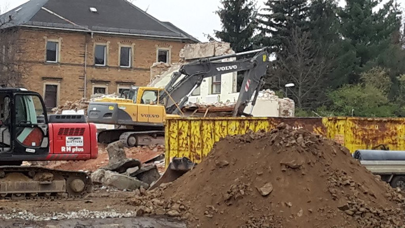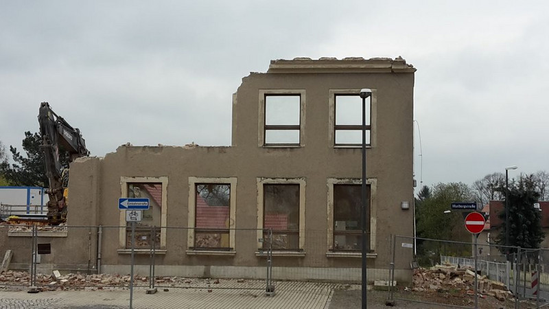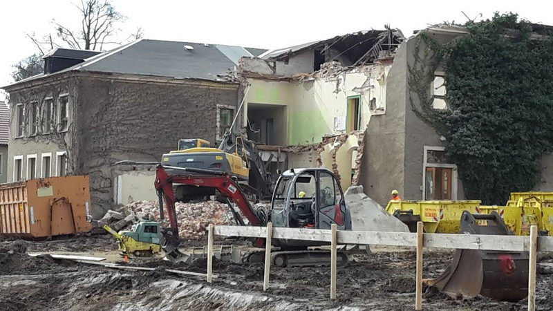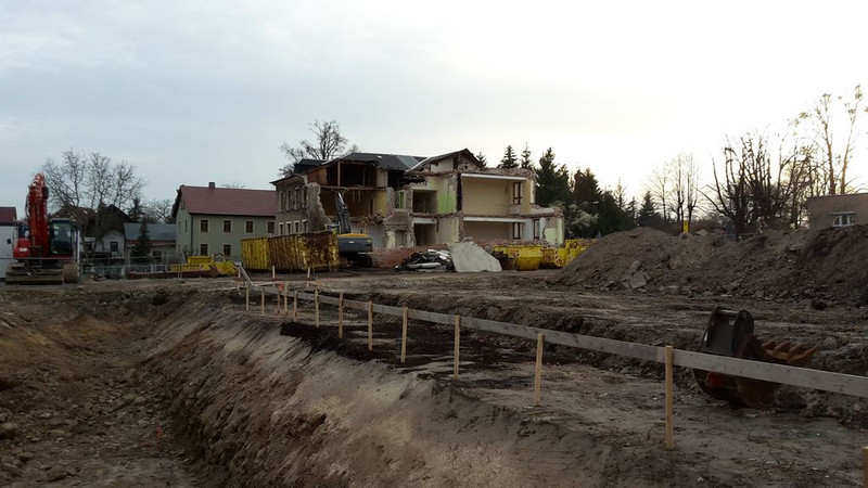 Gleich nach unserem Auszug begannen die Arbeiten zur Bauvorbereitung. Die Bäume wurden gefällt und die Baucontainer errichtet. Seit Montag, 21.03. sind die Abrissarbeiten im Gange. In loser Folge werden wir hier Bilder der Baustelle veröffentlichen.