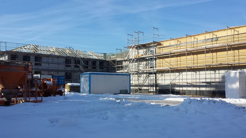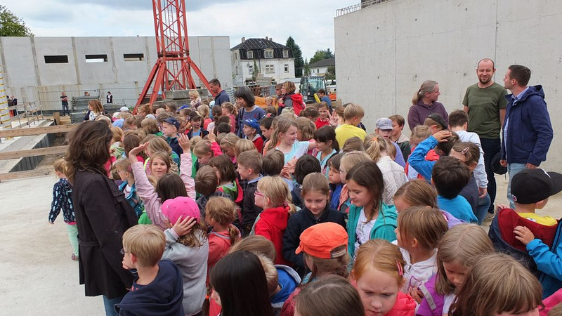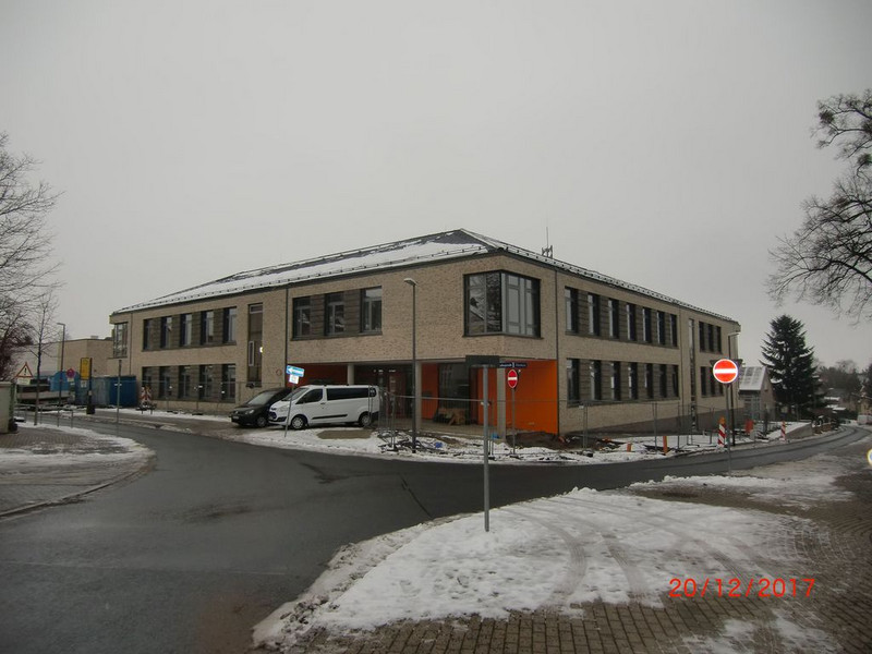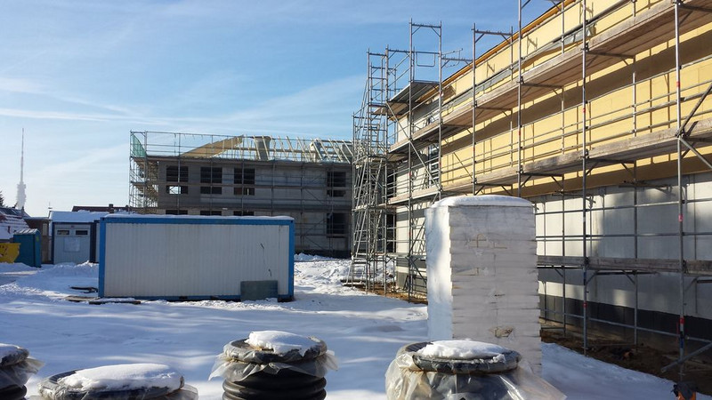 Am 14.03. fand um 14.00 Uhr eine Schulbesichtigung der Baustelle in Rochwitz statt. Der Schulbau ist nun im Rohbau fertig und der Innenausbau beginnt bereits. Teilweise sind die Fenster schon drin und in der Turnhalle stehen die ersten Trockenbauwände. Unsere neue Turnhalle bietet viel Platz zum Sport treiben, mehr als wir je zuvor hatten. Die Dachziegel stehen bereit und werden wohl bald auf dem Dach liegen. Aus den Fenstern in der ersten Etage hat man einen fantastischen Blick, auf die umliegenden Höhen und kann sogar den Triebenberg sehen.