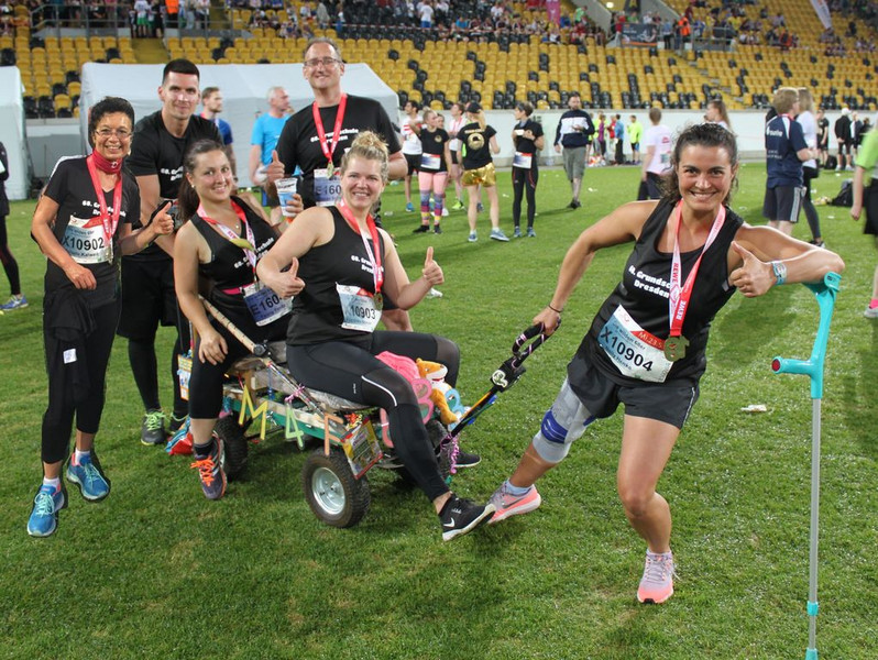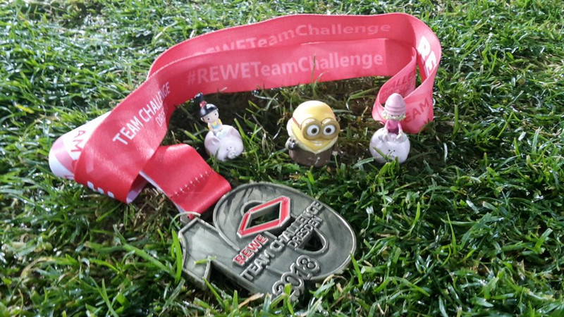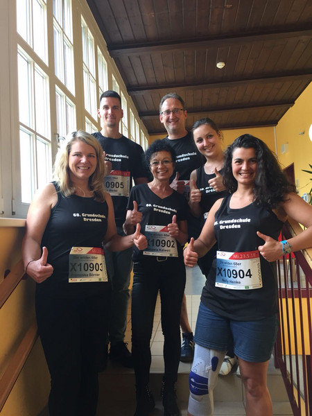 Im Dezember 2017 haben wir uns dafür entschieden, an der 10.REWE Team Challenge teilzunehmen. Am 23.Mai 2018 war es dann endlich soweit und das wochenlange Training und Warten hatte ein Ende. In zwei aufeinanderfolgenden Startwellen konnten sechs Kollegen/innen unter dem Teamnamen "Die wilden 68er" die 5km Strecke durch die historische Innenstadt Dresden bis zum DDV-Stadion zurücklegen. Durch die kurzfristige Verletzung eines Teammitgliedes musste umgeplant werden, so dass es dennoch alle gemeinsam in das Ziel schafften. Ein kleiner Wagen, bunt geschmückt mit Grundschulutensilien und dem schlauen Wiesel, wurde tatkräftig gezogen und geschoben. Dabei war nicht an Pause und Erschöpfung zu denken. Unser Team wurde vom Seitenrand bejubelt, gelobt und fotografiert, von den Läufern und Läuferinnen bestaunt. Gemeinsam haben wir es geschafft - unsere Team Challenge. Wir freuen uns schon auf das nächste Jahr.