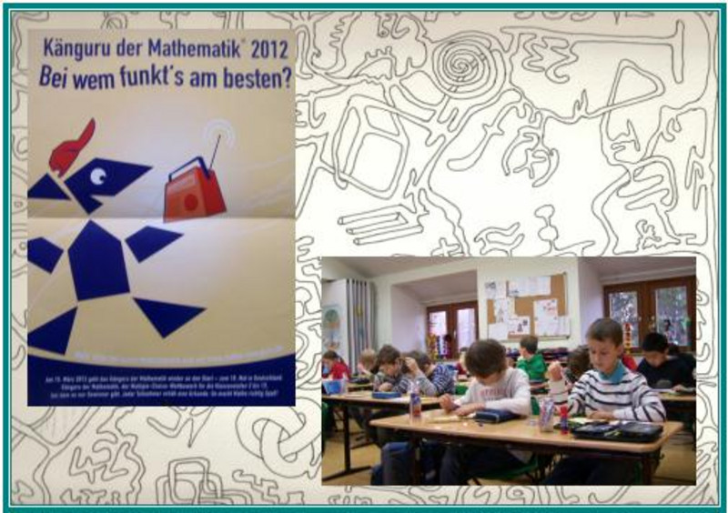 40 Schüler aus den dritten und vierten Klassen wetteiferten am 15.März 2012 um die weitesten Kängurusprünge. Seit vielen Jahren nimmt unsere Grundschule an diesem internationalen Wettbewerb teil. Herr Dr. Breuer bereitet im Kurs „Mathe mit Pfiff“ die Kinder gut darauf vor.