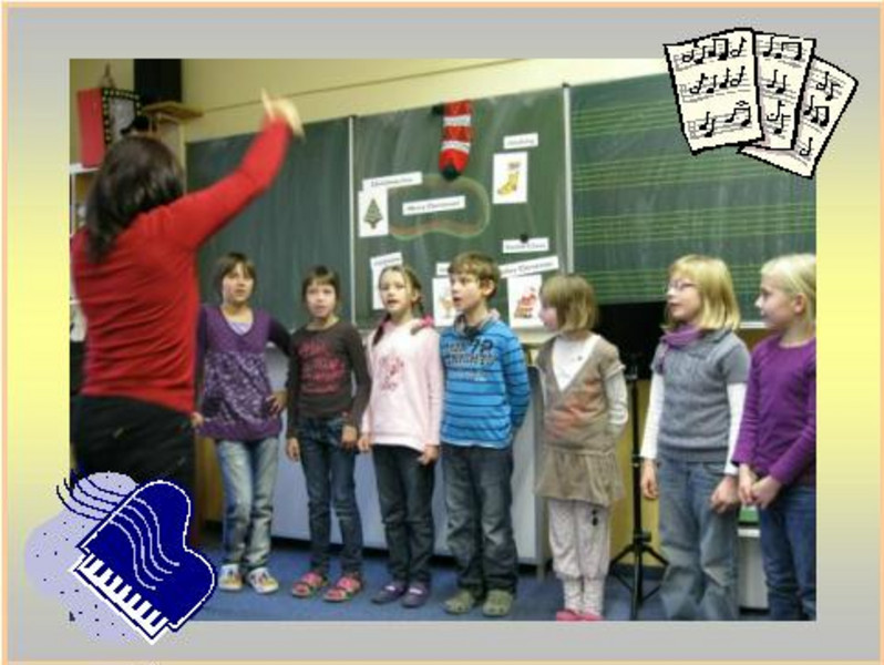 Frau Müksch leitet seit einigen Wochen den neuen Schulchor. Dieser wächst langsam heran, es werden gerne noch neue Sänger aufgenommen. Der erste Auftritt in der Adventszeit war ein guter Erfolg.