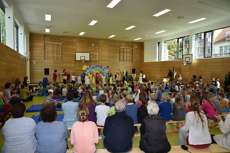 Die drei Farben GELB- ROT- BLAU in dem Kindermusical KUNTERBUNT machten unsere besondere Musikstunde in der neuen Turnhalle bunt und sehr lebendig. Bist du froh, farbenfroh, ist dein Leben ebenso, wie ein Regenbogen hoch im Sonnenschein.