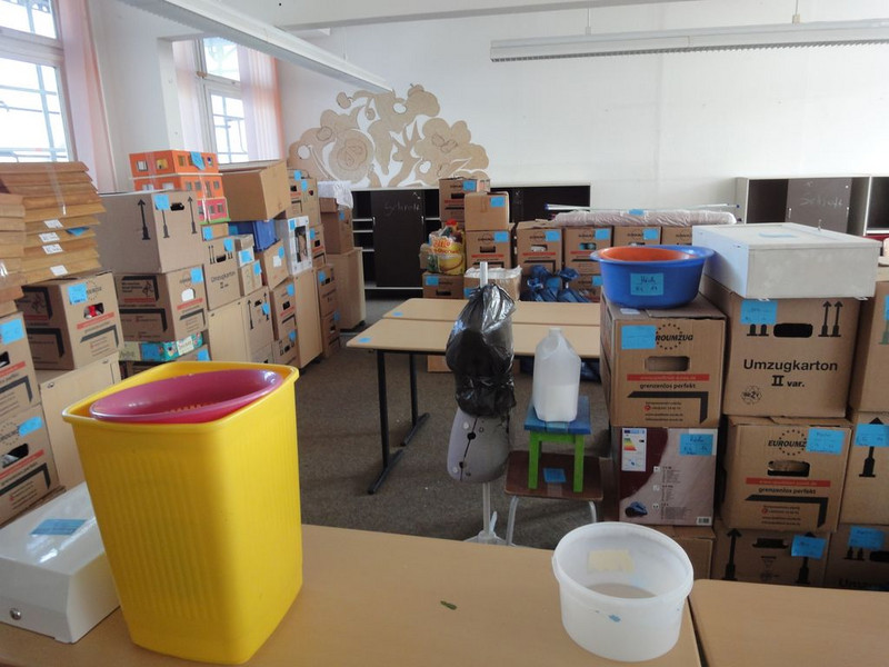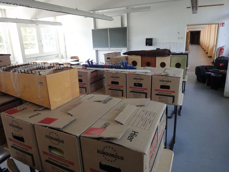 Die Vorbereitungen am Schuljahresende liefen auf Hochtouren. Wochenlang waren Lehrer und Schüler damit beschäftigt zu räumen, wegzuwerfen und zu packen. Zwischen Matheaufgaben, der Ethikarbeit oder dem Biovortrag war immer ein Moment, um sich sportlich zu zeigen. Jeder packte an, wo es ging. Nun ist alles verpackt und der Umzug in den Sommerferien konnte starten.