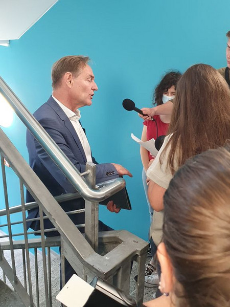 Auch die ehemaligen Schulleitungen des Klinger-Gymnasiums und unsere (Dr. Liebau, Frau Gerlach und Frau Meyer) waren anwesend und konnten den ein oder anderen Rückblick zu den Anfängen des Bauprojekts über Bilder und Worte auf sich wirken lassen. Insgesamt sieben Jahre Bauzeit ist eine lange Zeit, hier sind die Planung und Genehmigung noch nicht mal eingerechnet. Am Ende können wir aber auf ein tolles Objekt schauen, in dem wir nun sein dürfen. Viele andere Schulen in Leipzig warten sehnsüchtig auf Erneuerung, wie es den Medien aktuell immer wieder zu entnehmen ist.