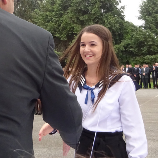 Während der Führung durch die Schule erfuhren wir, dass die Schule wie unsere ca. 400 Schüler und 40 Lehrer hat. Ab der neunten Klassenstufe gibt es drei Profile, zwischen denen die Schüler wählen können: das sprachliche Profil (Deutsch oder Englisch), das naturwissenschaftliche Profil und das ökonomische Profil. Bevor sich der Schüler ein Profil auswählt, hat er die Möglichkeit die sogenannte "nullte Klasse" zu besuchen. Das bedeutet, die Schüler lernen ein ganzes Schuljahr entweder Deutsch / Englisch, Informatik oder Sport mit erhöhter Stundenzahl.