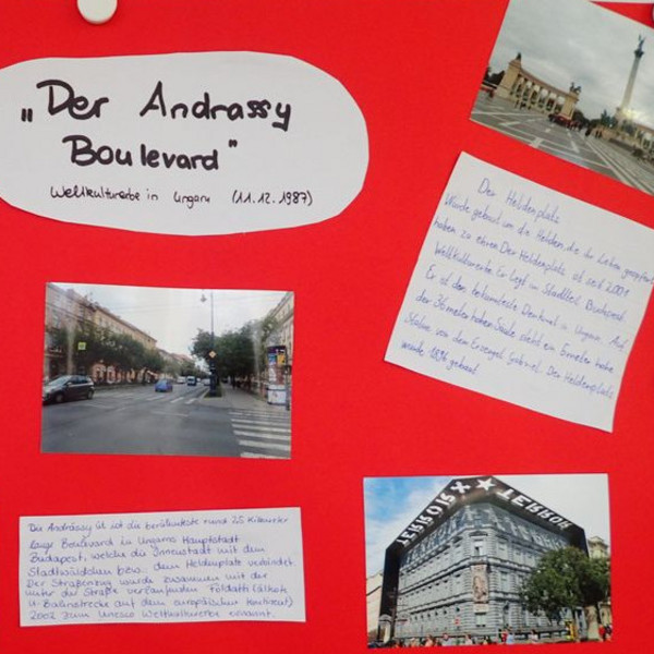 Die Schüler des UNESCO-Neigungskurses beschäftigten sich über 4 Unterrichtsstunden mit dem "Andrassy Boulevard" in der ungarischen Hauptstadt Budapest, der 2002 zum UNESCO-Weltkulturerbe ernannt wurde.