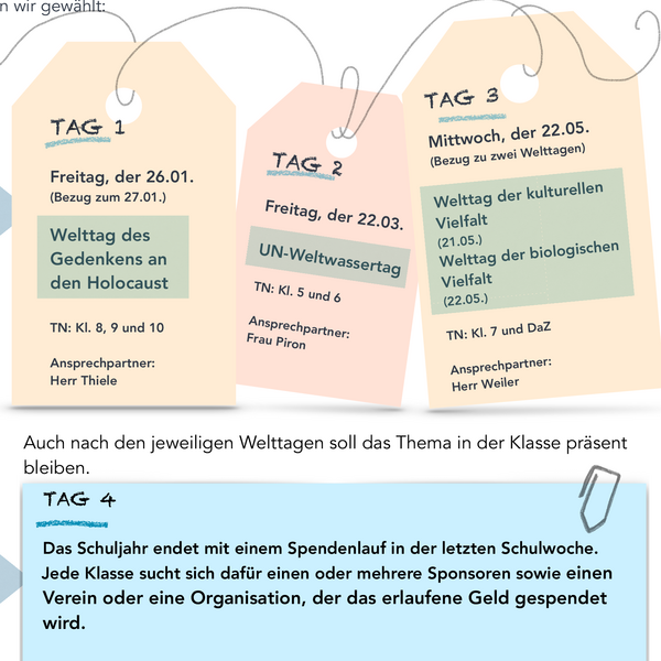 Mit dem neuen Schulstandort wurde vom Unesco-Team ein neues Format angeboten. Grundlegendes Ziel bleibt es, die Schülerinnen und Schüler mit den Leitgedanken der UNESCO vertraut zu machen.