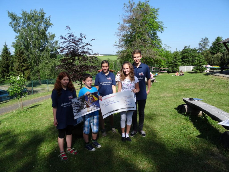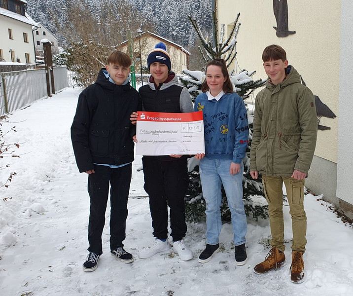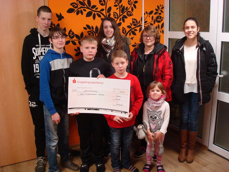 Auch im Jahr 2016 ließen wir andere Menschen an von uns eingespielten Geldern, sei es beim Sponsorenlauf oder bei "Genial Sozial", teilhaben. So hatten Antonia, Emely, Lilian und Herr Wirth einen Scheck in Höhe von 650,- € im Gepäck und übergaben diesen an das Kinder- und Jugendzentrum Pobershau. Freudige Augen und nette Worte verrieten uns, dass man davon vielleicht ein Küchenradio, eine neue Fernbedienung oder einen Flachbildfernseher kaufen möchte.