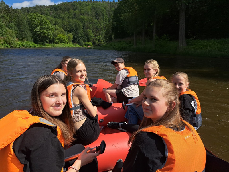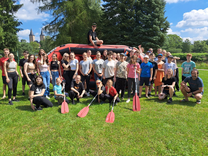 Anfang Juni hieß es für 37 unserer engagiertesten Schülerinnen und Schüler: Ruder in die Hand und ab auf die Mulde! Unter strahlendem Sonnenschein starteten wir unsere Auszeichnungsfahrt, die uns von Wechselburg nach Rochlitz führte.