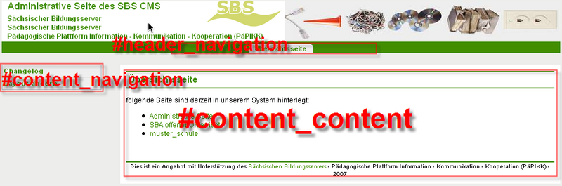 Die Bennenung der Elemente folgt dem CSS-Standard. Um alle Benennungen herauszufinden, genügt ein kurzer Blick in den Quellcode. Für Firefox und Internet Explorer gibt es je eine Extension, die das Herausfinden der ID's und Klassen erheblich erleichtern.
