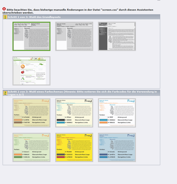 Je nach Vorlage haben Sie die Möglichkeit verschiedene Optionen zu setzen. In dem meisten Vorlagen sind das der Schulname, ein Logo und ein Motto.