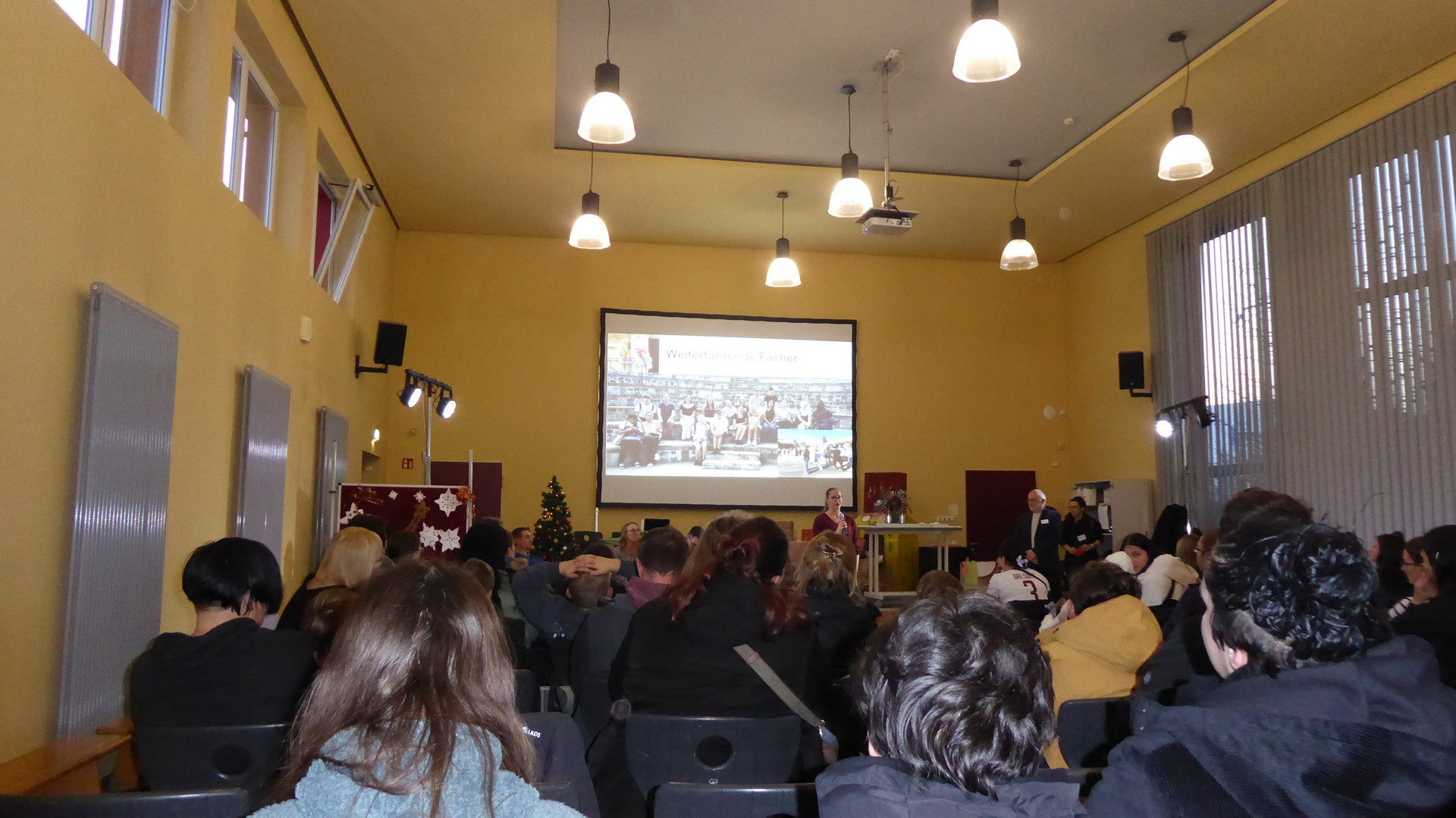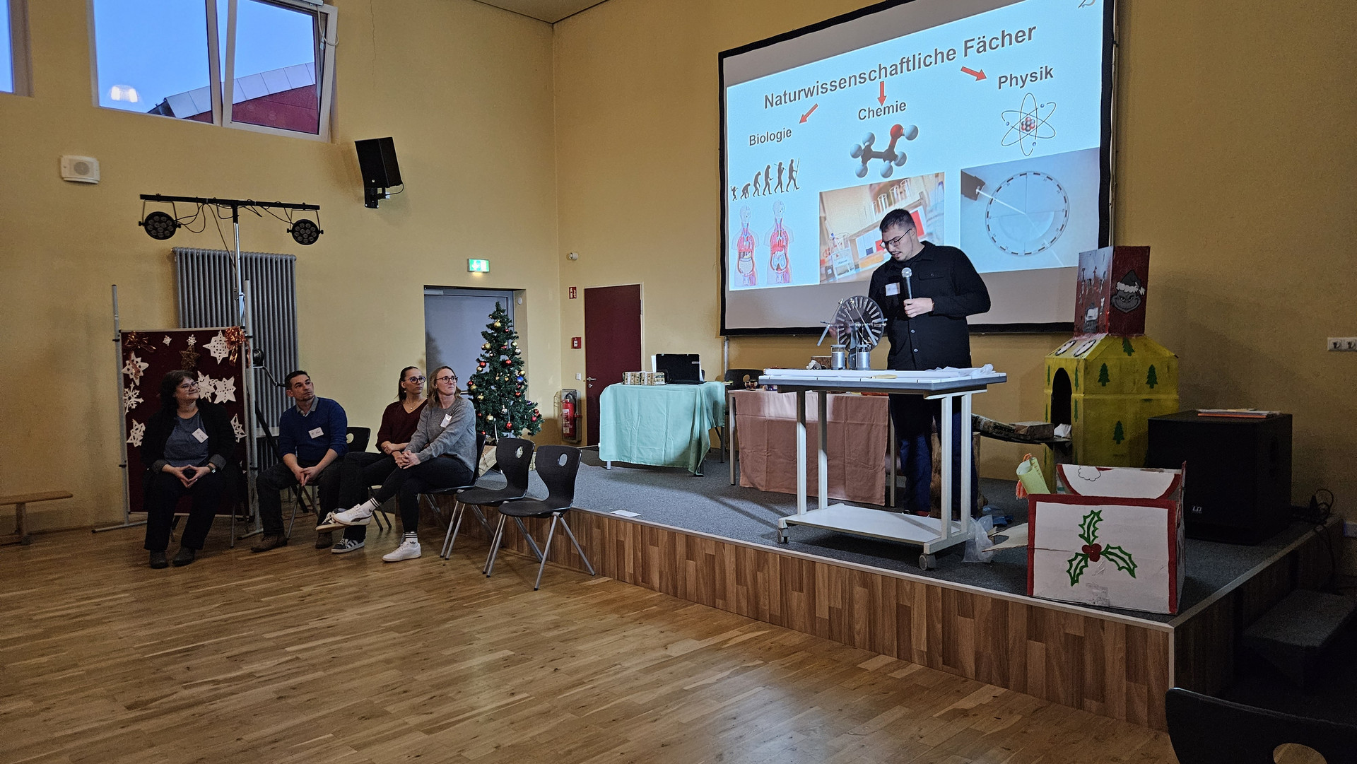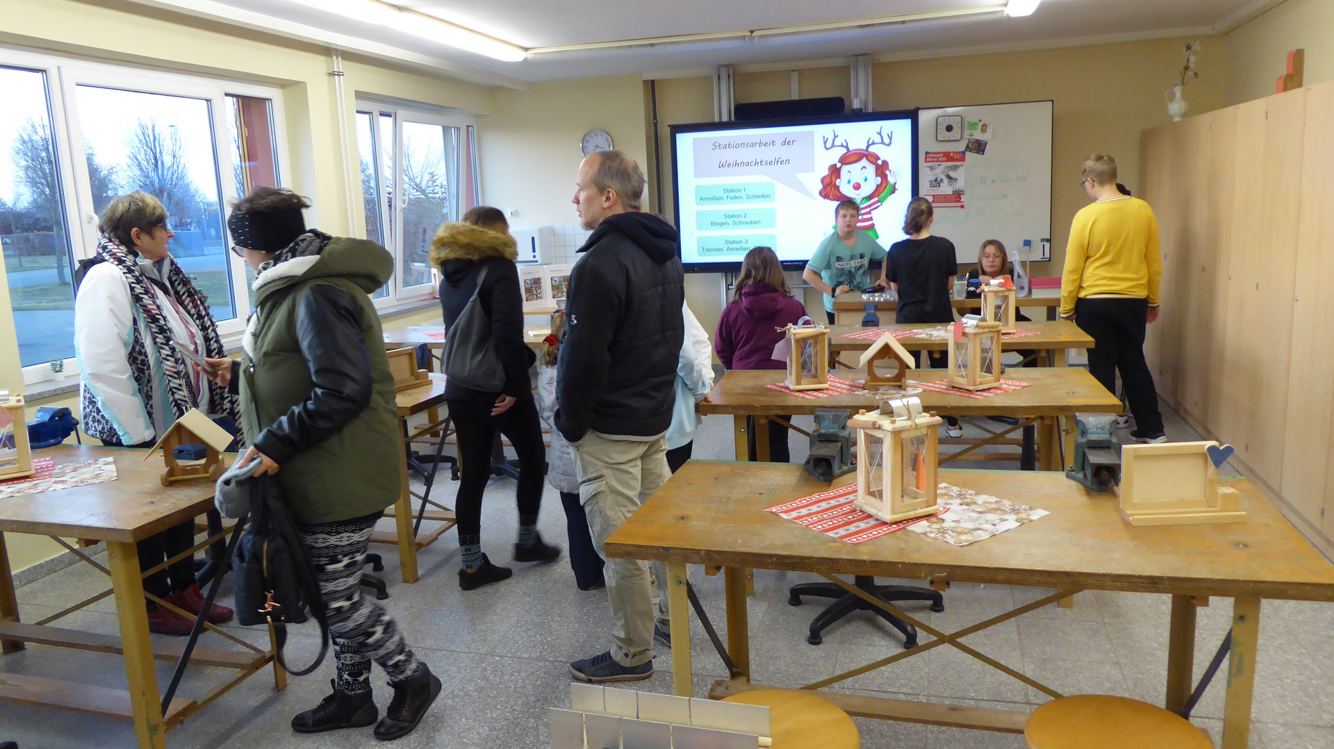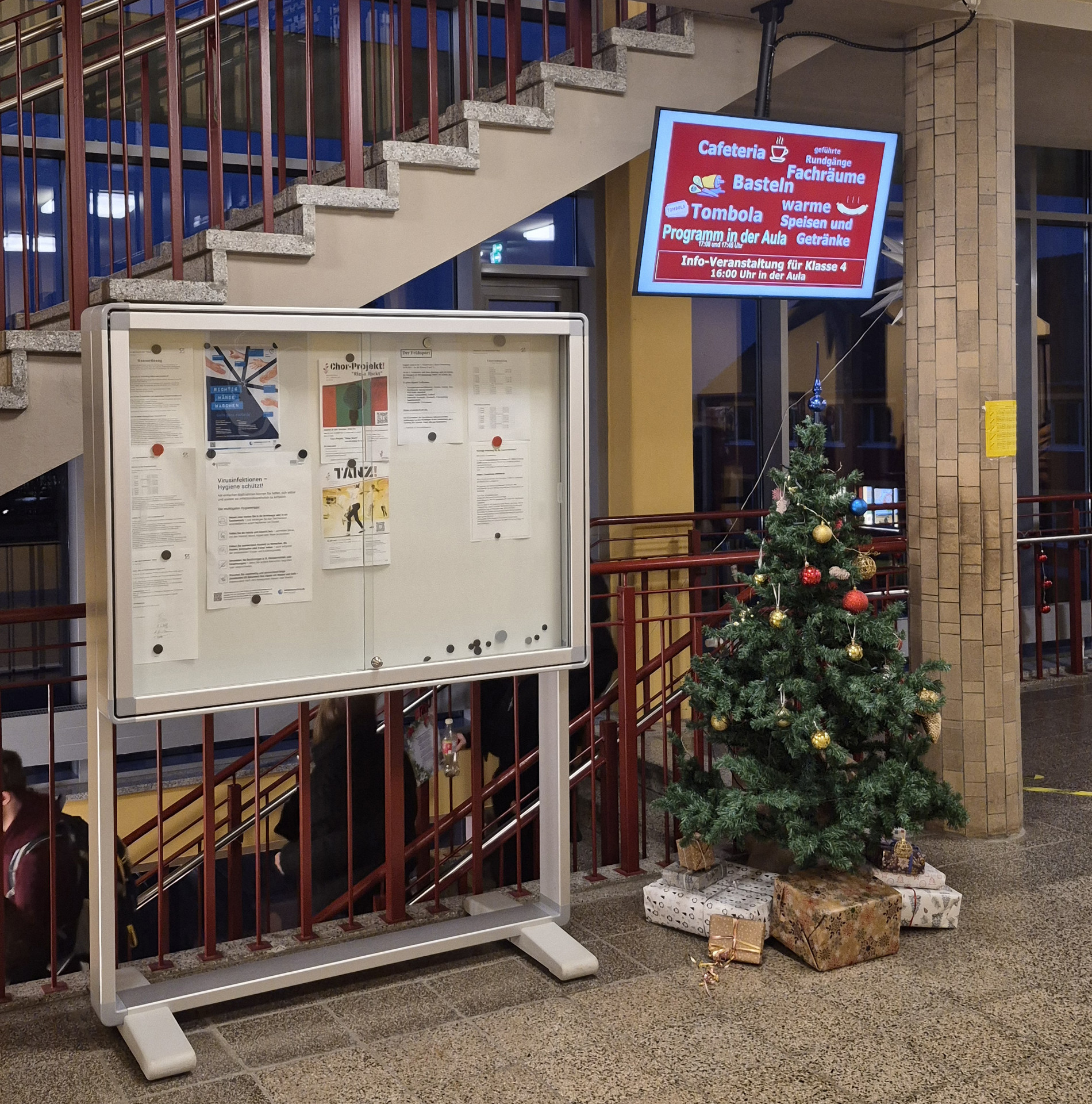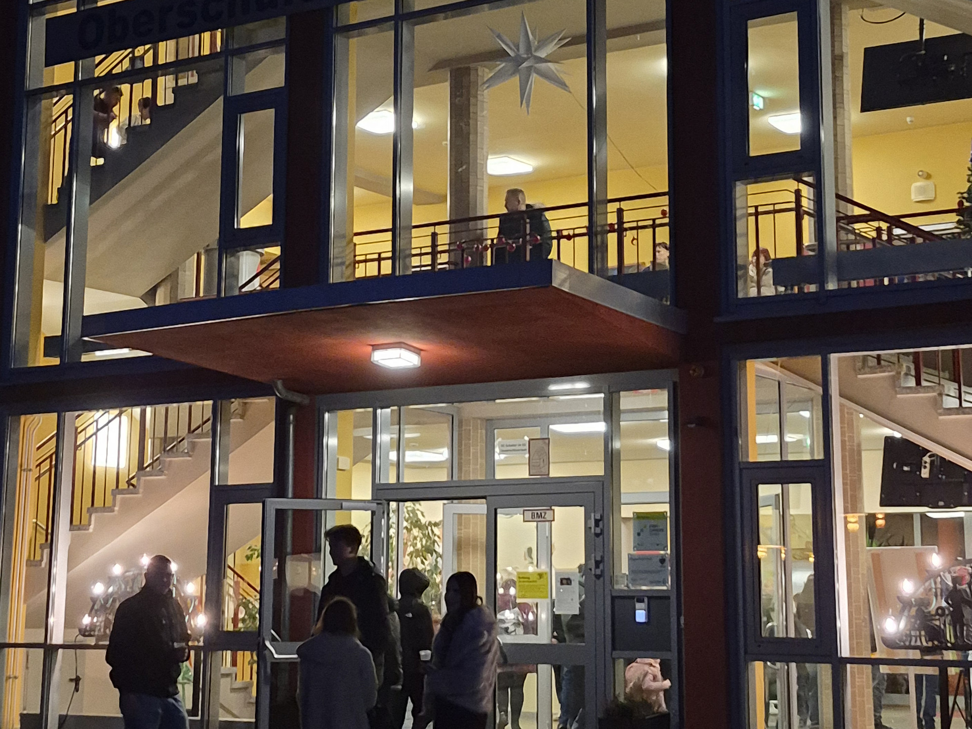Am 27.11.2025 öffneten sich die Türen unserer Schule für alle Besucher. Es waren viele Eltern auf Entdeckungstour, ehemalige Schüler und Lehrkräfte auf Erinnerungstour und alle nahmen den Flair unseres "Weihnachtszaubers" auf. Für Besucher, die unsere Schule noch nicht kannten, gab es Führungen. Rege besucht wurden die von unseren Schülern liebevoll hergerichteten Stände, Essen- und Getränkestände, das Glücksrad, die Tombola, die Fotobox, das sportliche Mitmach-Angebot sowie unser Bühnenprogramm in der Aula.