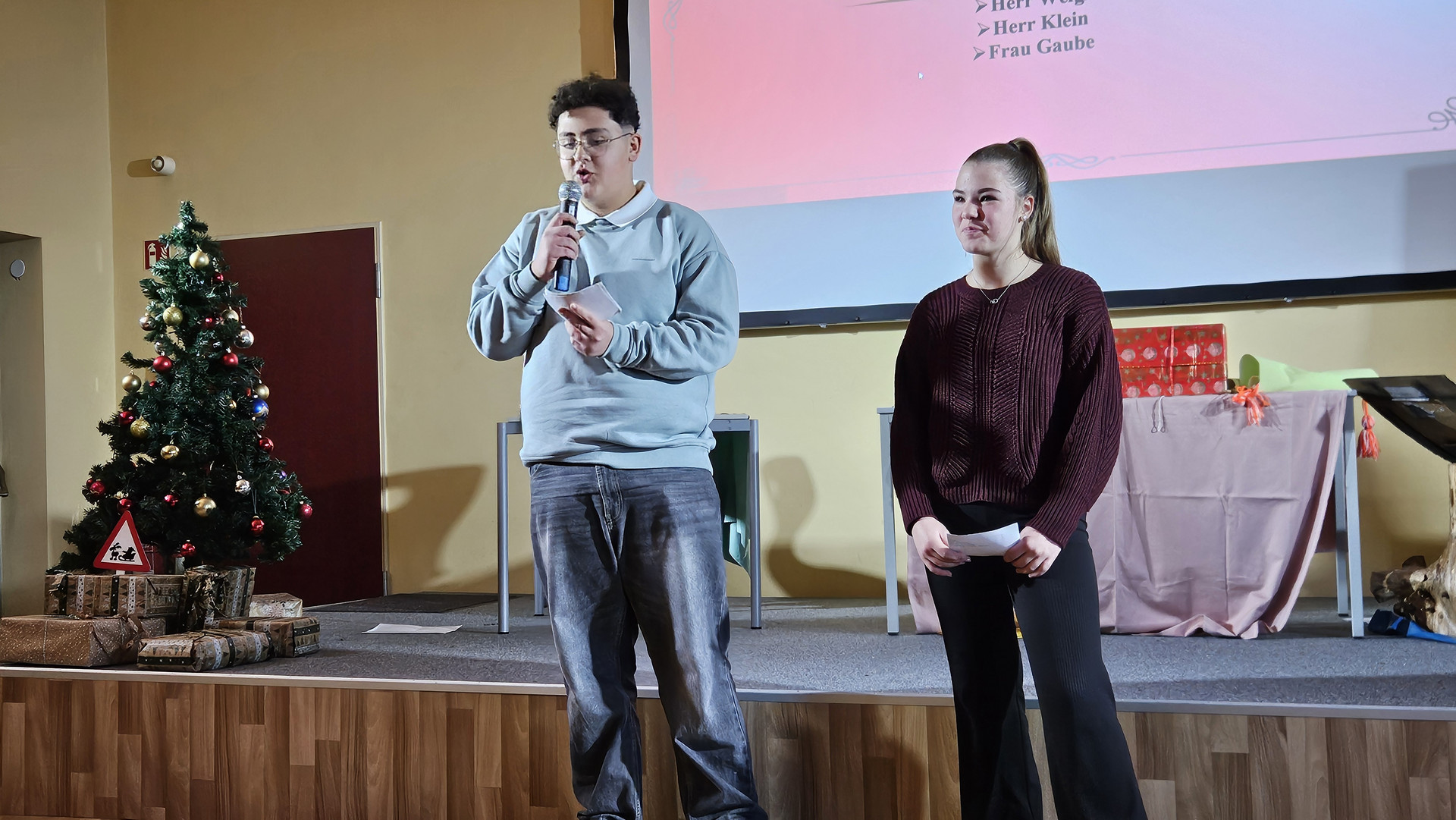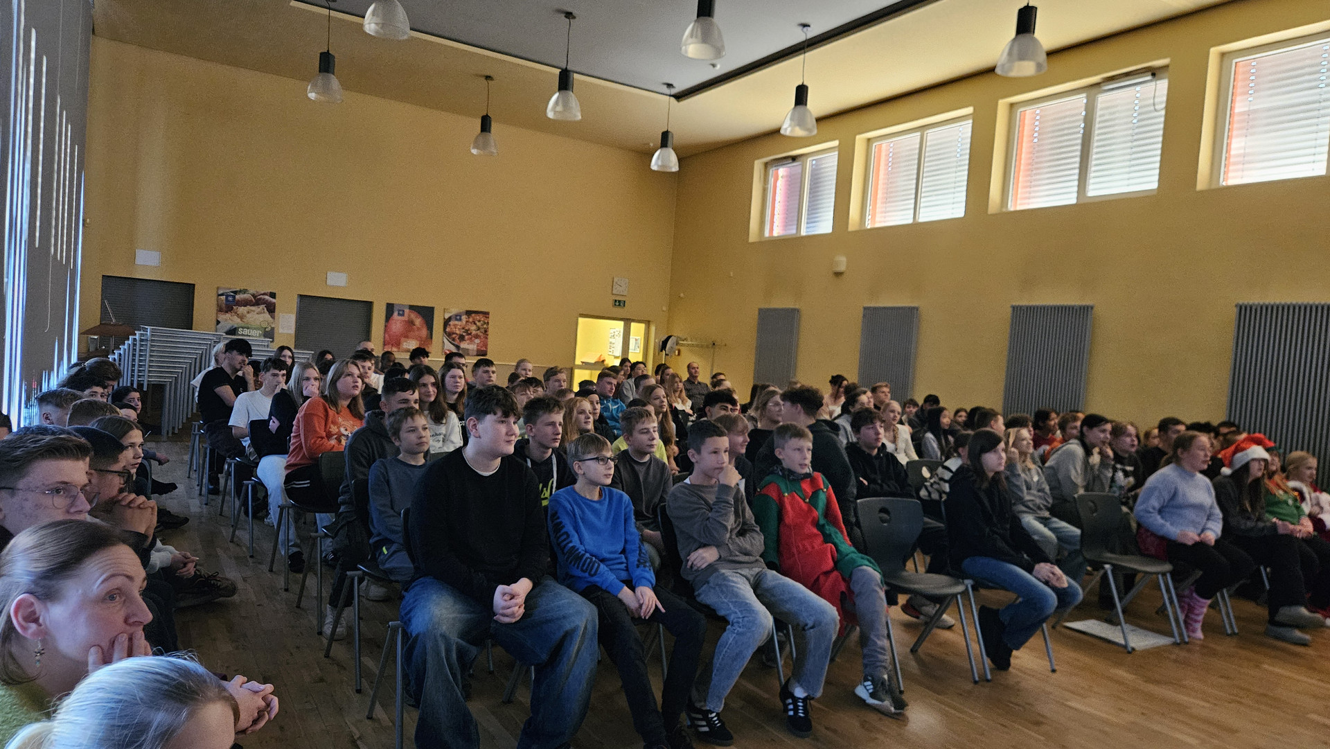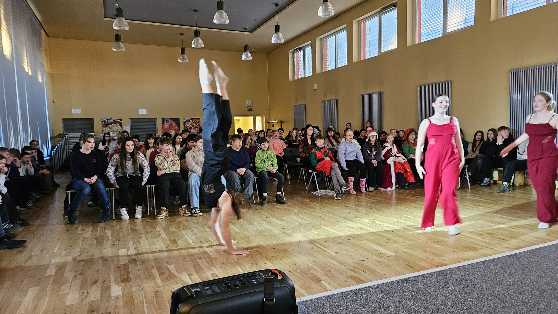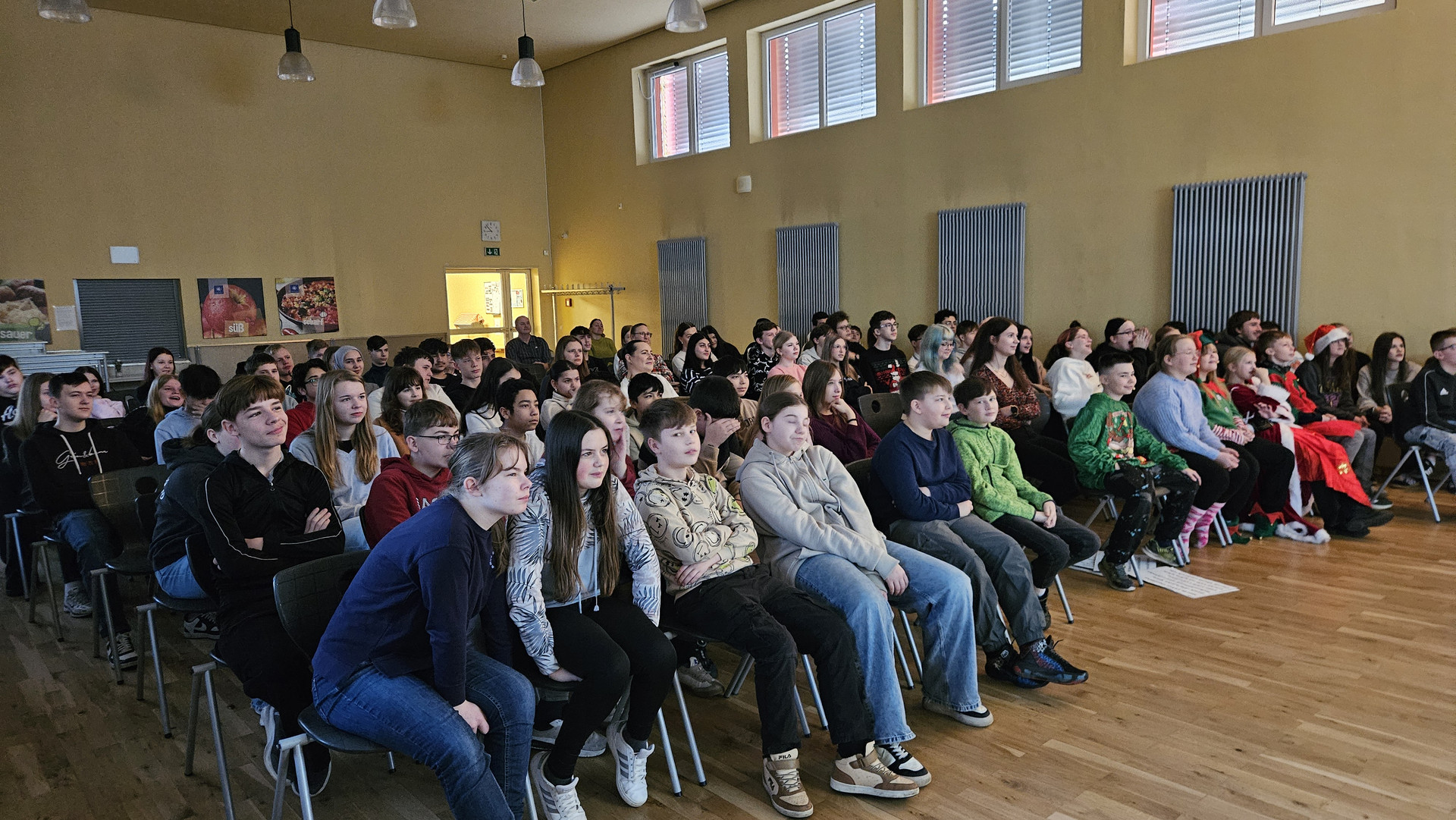 Am 19. Dezember 2025 fand am letzten Schultag vor den Weihnachtsferien traditionell das Zusammenkommen aller Schüler in der Aula statt. Das Programm bestand aus einem tänzerischen, schauspielerischen und musikalischen Teil. Bei den Auszeichnungen für besonders engagierte Leistungen gab es ebenfalls viel Applaus.