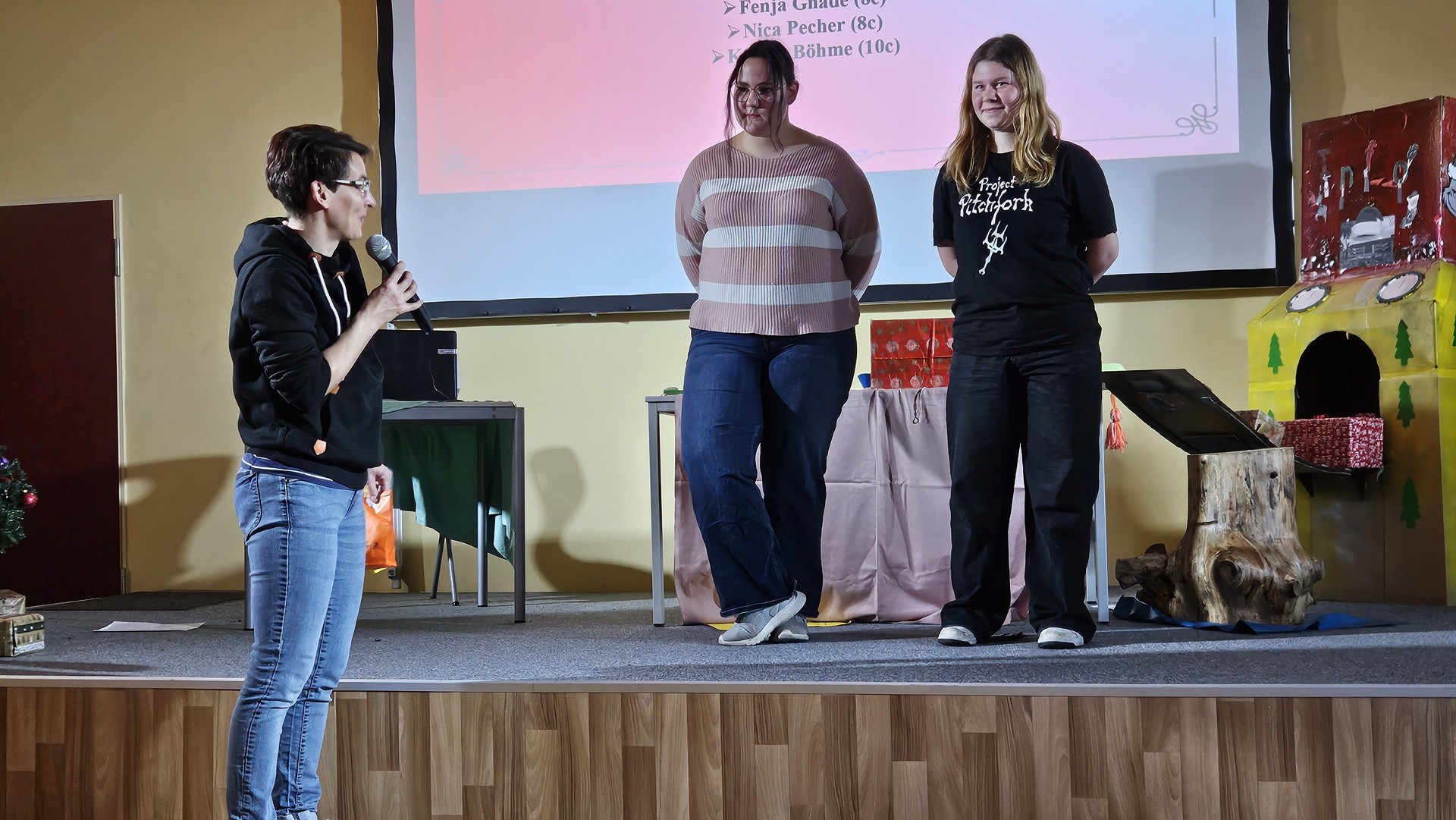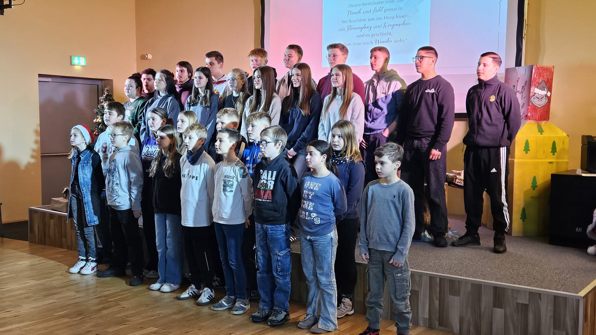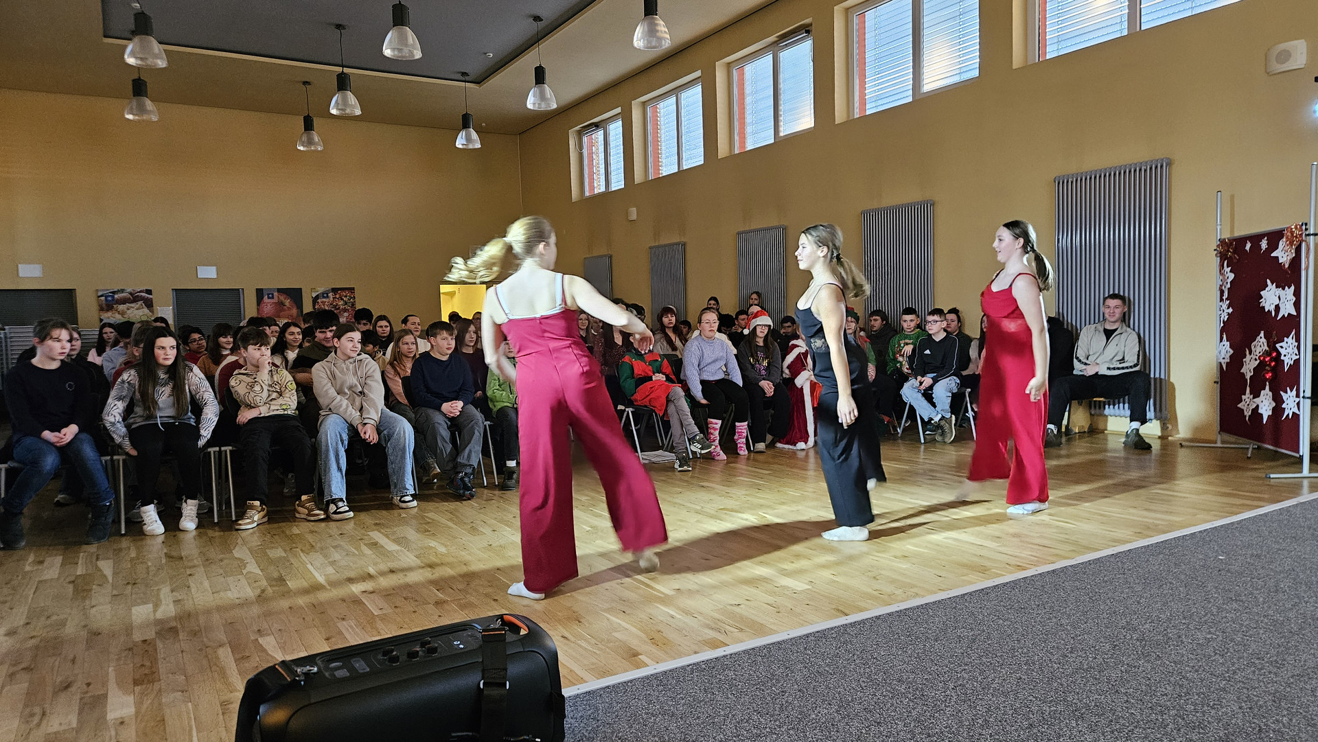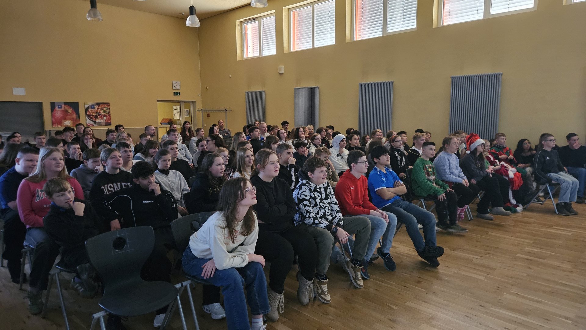Am 19. Dezember 2025 fand am letzten Schultag vor den Weihnachtsferien traditionell das Zusammenkommen aller Schüler in der Aula statt. Das Programm bestand aus einem tänzerischen, schauspielerischen und musikalischen Teil. Bei den Auszeichnungen für besonders engagierte Leistungen gab es ebenfalls viel Applaus.