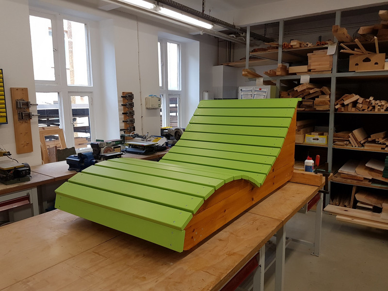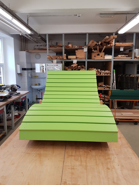 Als Geschenk zur Verabschiedung zweier Schulleiter/innen im Frühjahr 2024, stellten Schüler/innen der BALD diese Gartenliege her. Als großangelegtes Projekt wurde klassenübergreifend gemeinsam an diesen Liegen gesägt, gehobelt, beschichtet, geleimt und geschraubt. Mit Stolz präsentierten die Schüler/innen ihre Ergebnisse und erhielten dafür von allen Seiten großes Lob.
