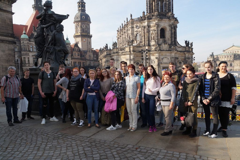 Nach der Begrüßung durch unseren Schulleiter, Herrn Loewens, und einem stärkenden Frühstück, fuhren wir gemeinsam mit 5 Kleinbussen in unsere Landeshauptstadt Dresden. Dort teilten wir uns in 2 Gruppen und starteten eine kleine Führung durch den historischen Altstadtkern von Dresden